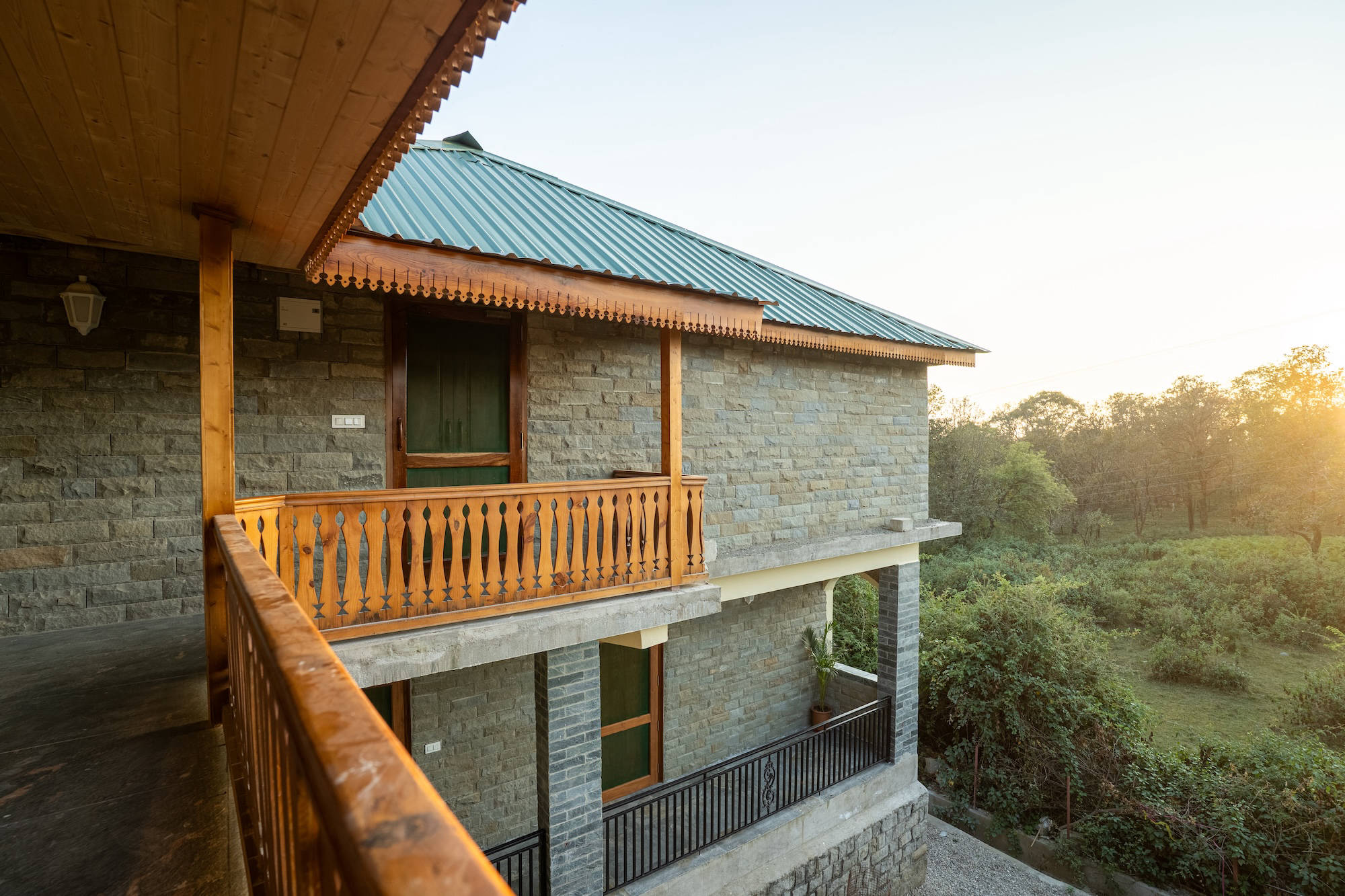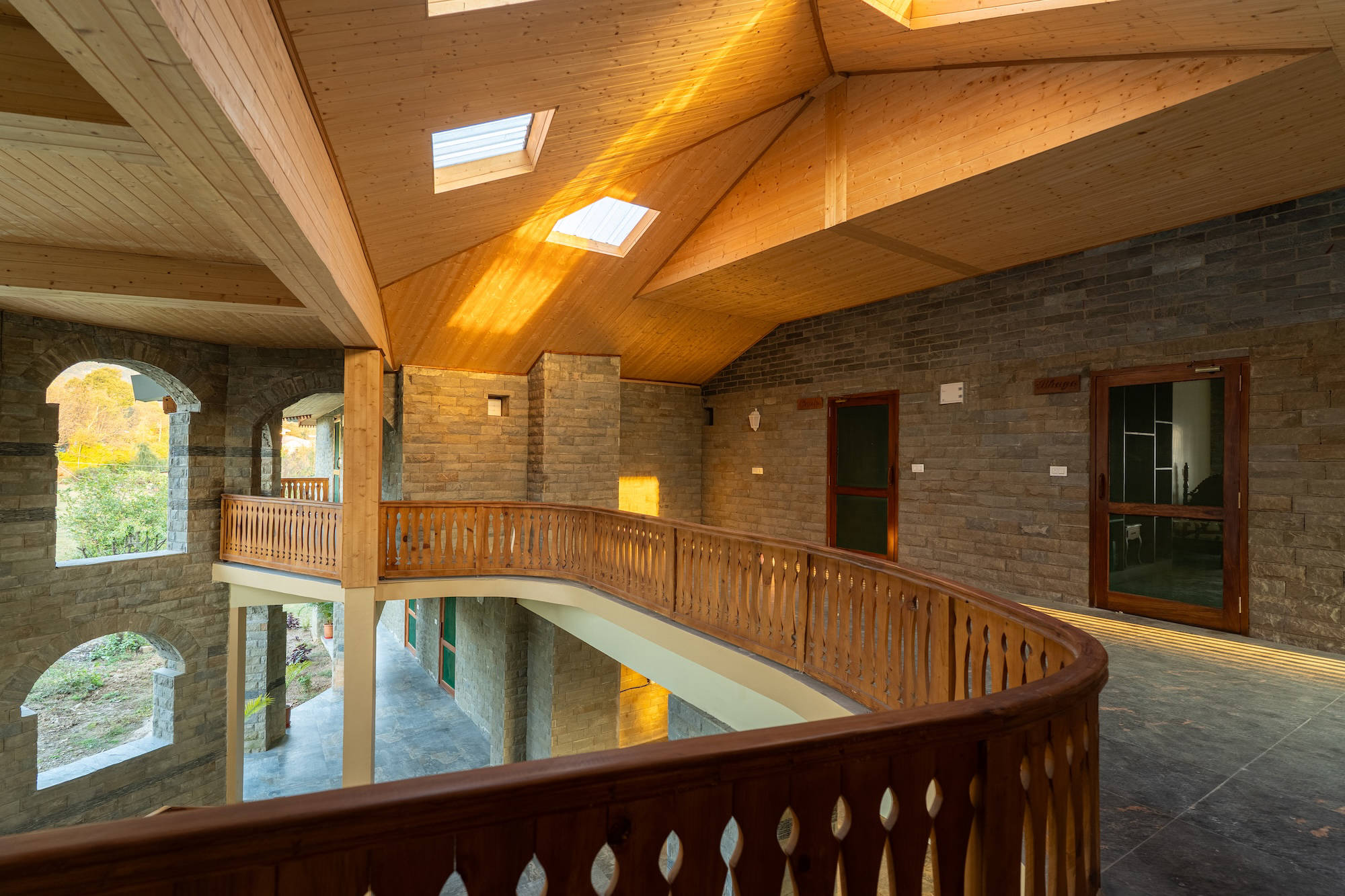 Set apart from the main estate, our newest wing is an architectural marvel — meticulously designed to offer uninterrupted views of the valleys and the mighty Dhauladhar range from every room. Clad in locally sourced stone and finished with handcrafted wooden balcony railings, the building blends seamlessly with the heritage of Kangra while bringing a refined, contemporary elegance to the heart of the tea estate.